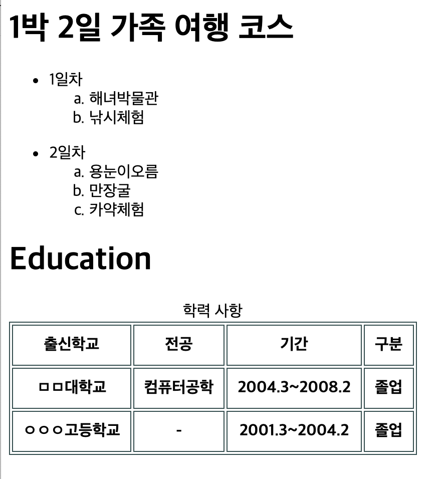 <th>제목셀</th> <!--1열, 제목셀이라 글꼴색이 조금 짙음-->