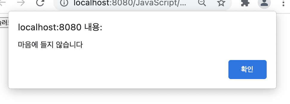 alert("마음에 들지 않습니다");
