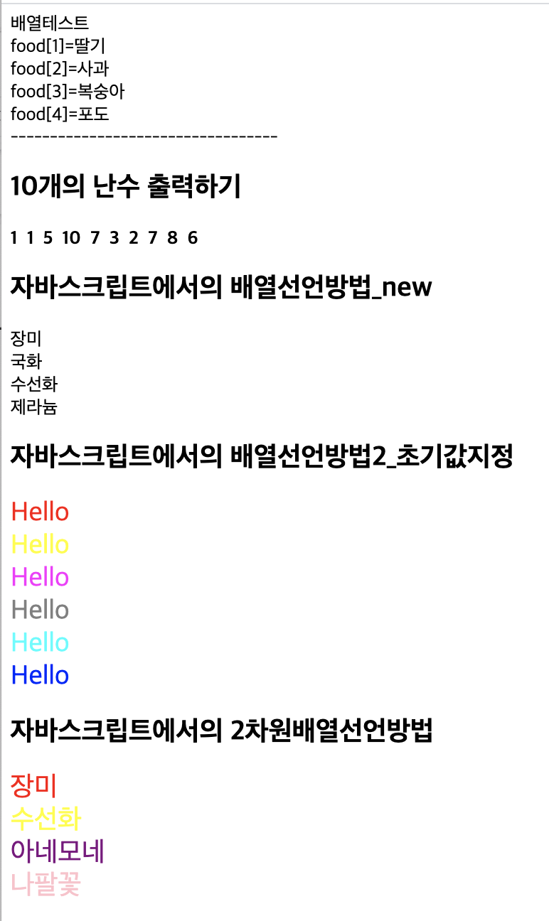 document.write("배열테스트<br>");