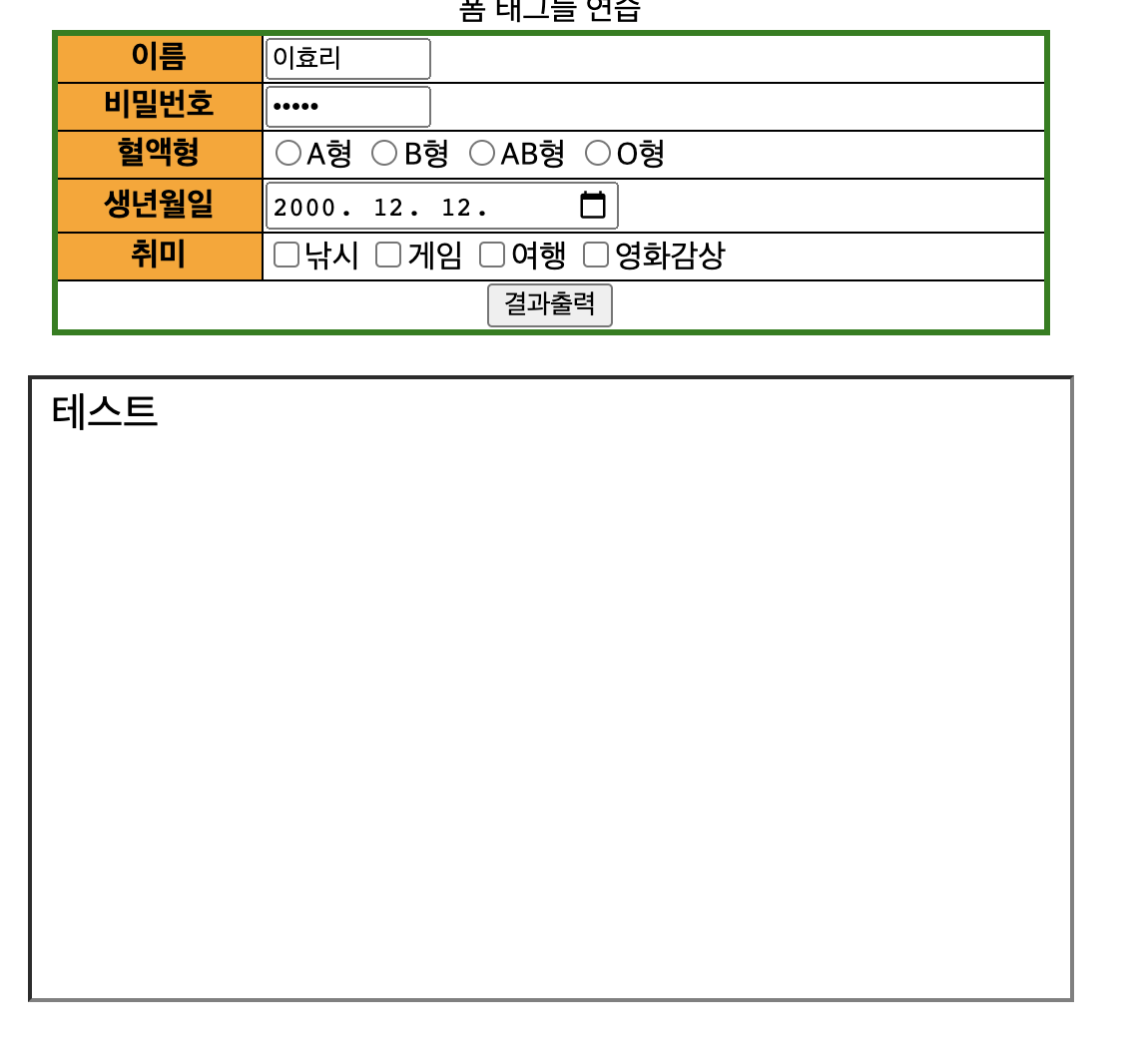 <caption>폼 태그들 연습</caption>
