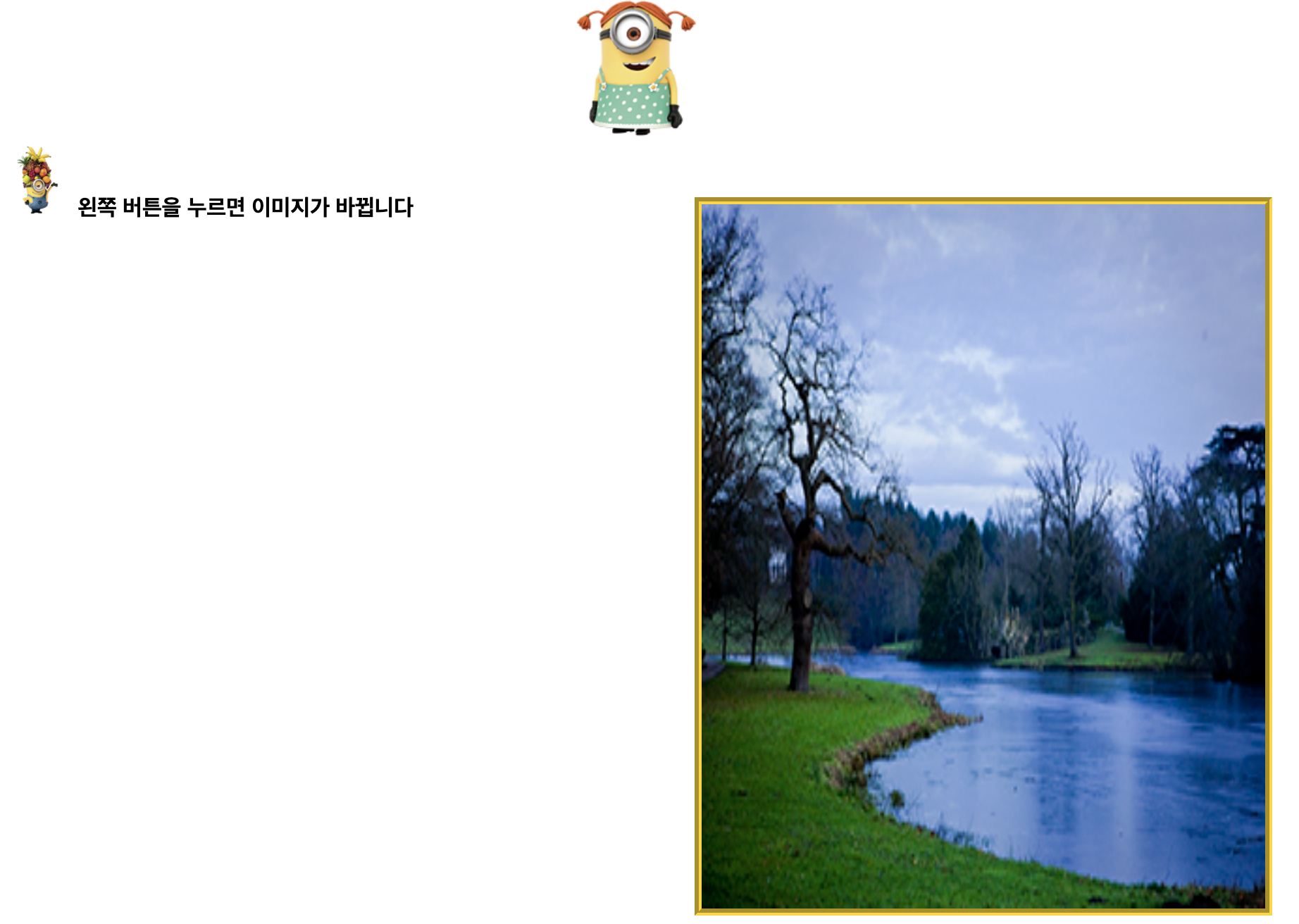 <b>왼쪽 버튼을 누르면 이미지가 바뀝니다</b></marquee>