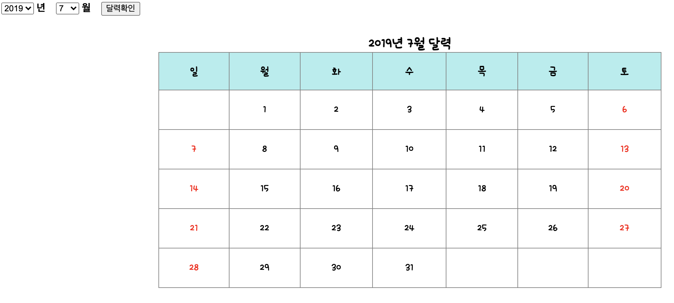 s+="<th>일</th><th>월</th><th>화</th><th>수</th><th>목</th><th>금</th><th>토</th>"