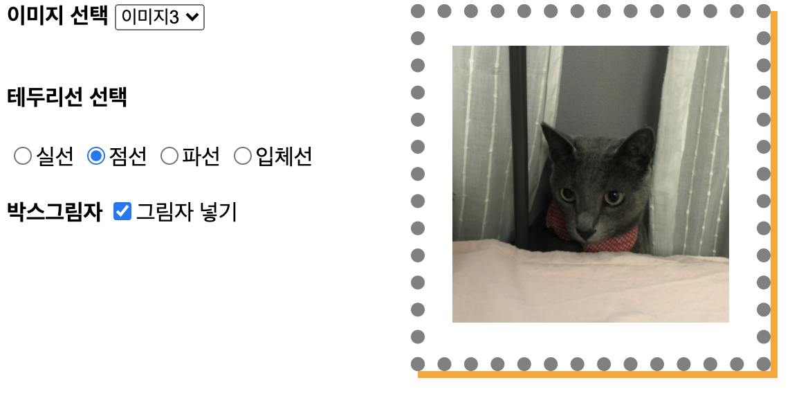 //그림자 선택시 click이벤트..box-shadow 5px 5px orange..선택 안 했을 땐 공백으로
