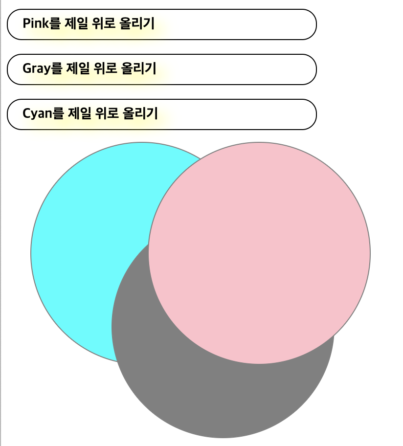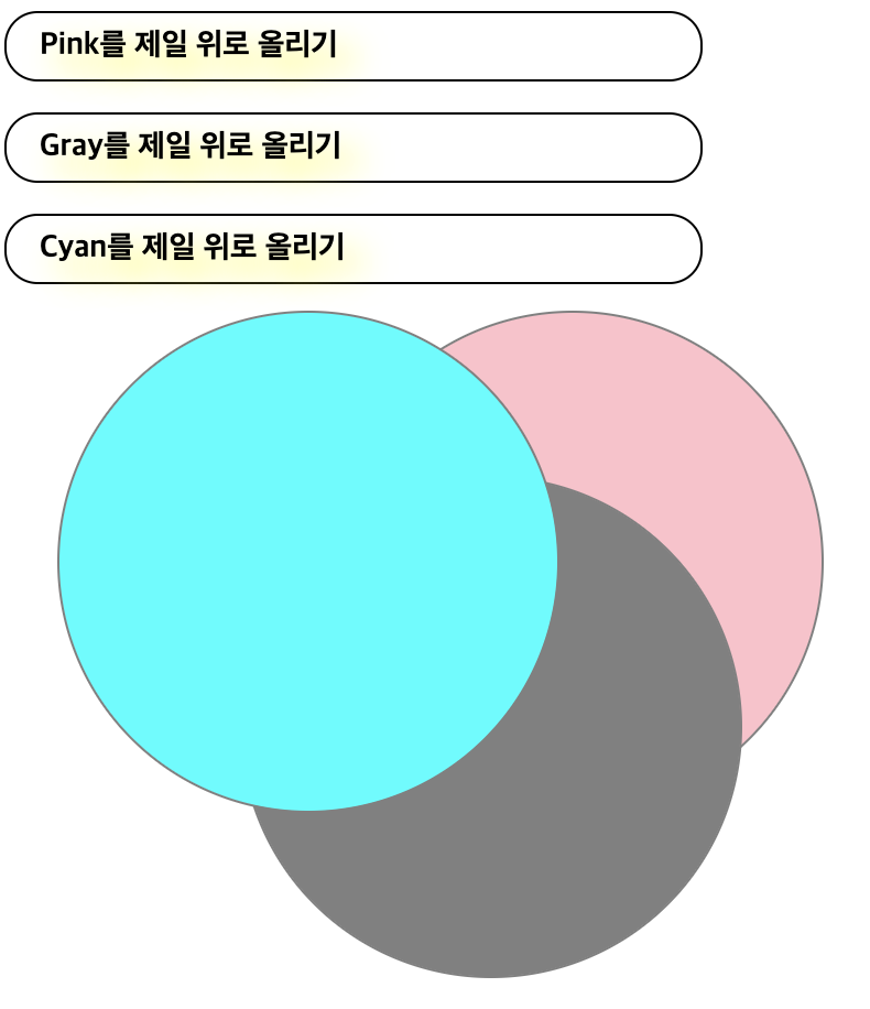 <h3 class="cyan">Cyan를 제일 위로 올리기</h3>
