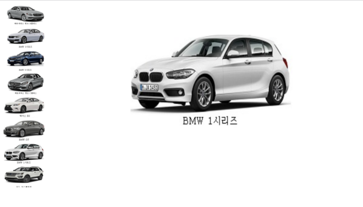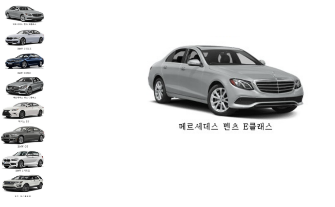 //이벤트..mouseover..작은차 이미지에 커서를 두면 해당 차의 큰이미지가 나오게