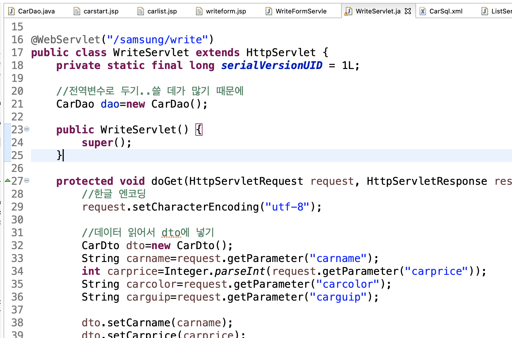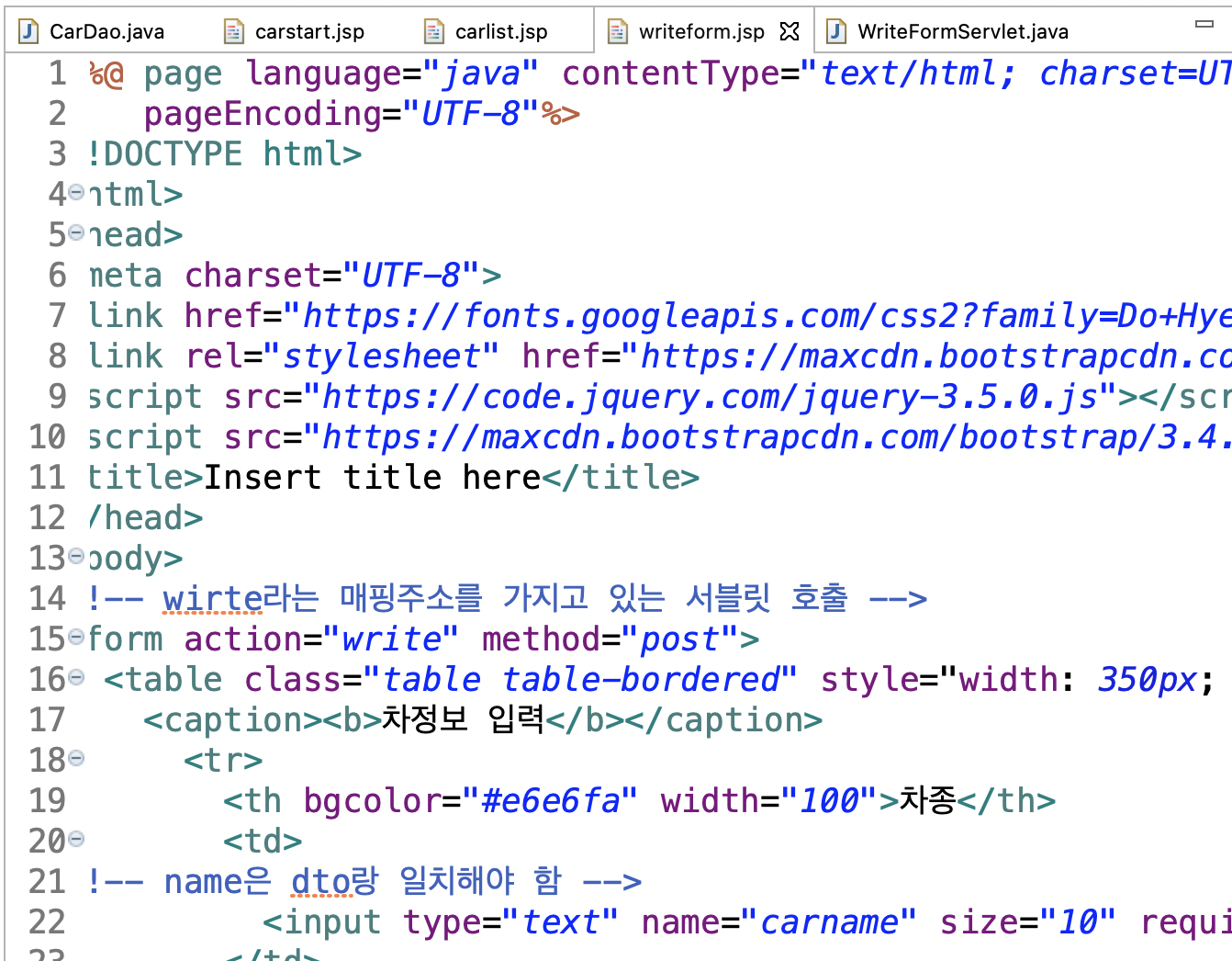 <!-- wirteform이라는 매핑주소인 서블릿을 호출 -->