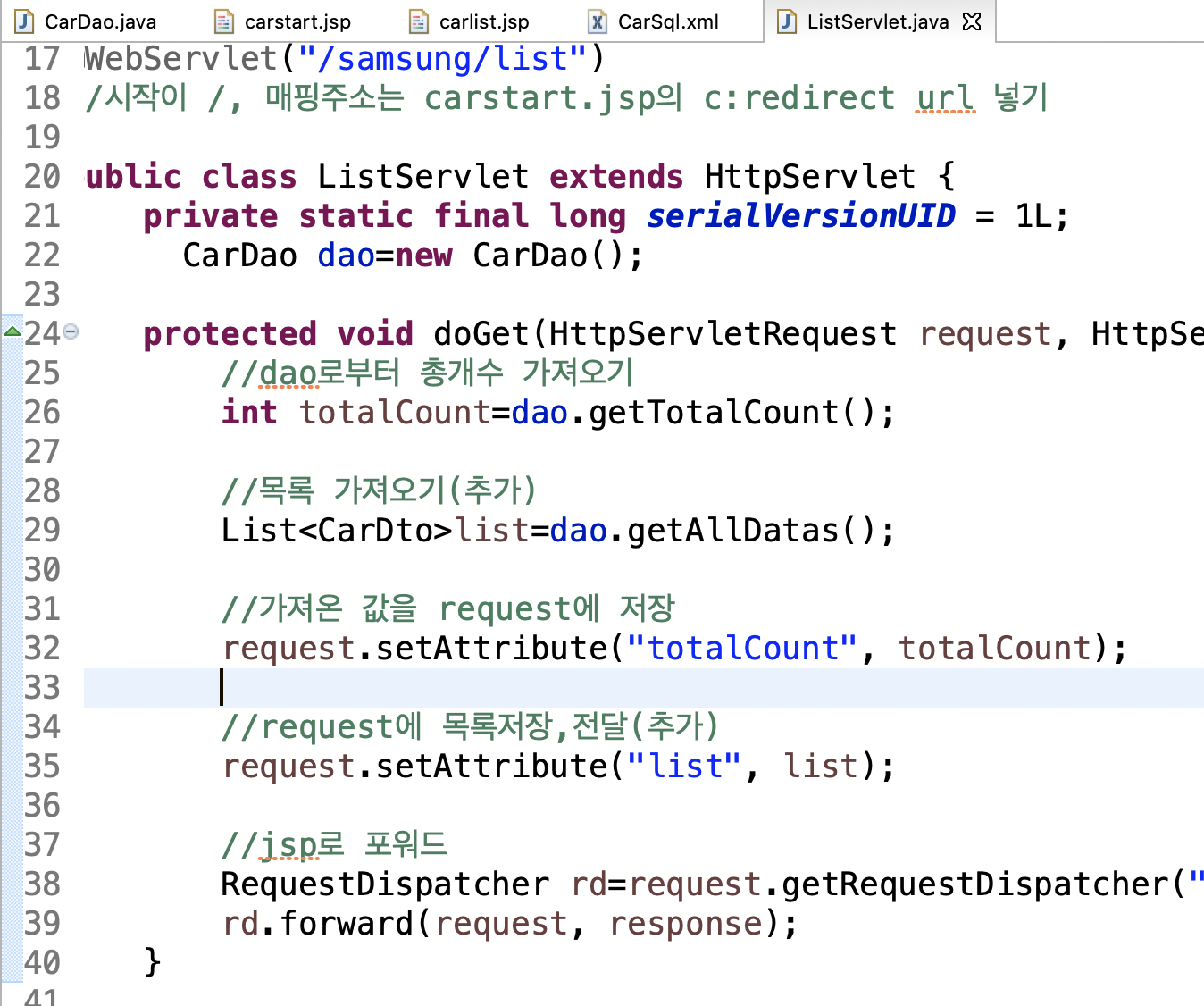 //목록으로 이동..리스트를 보여주는 서블릿 기사 데이터 가져온 후 jsp 가서 출력
