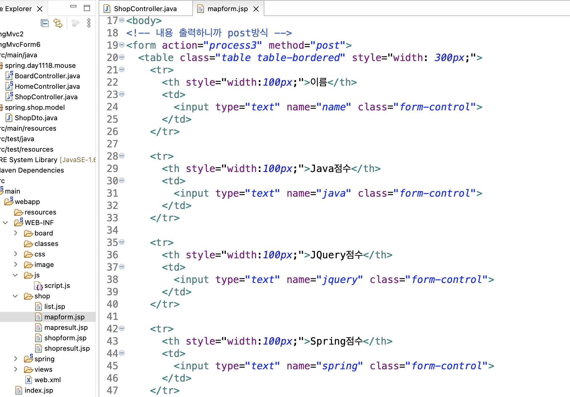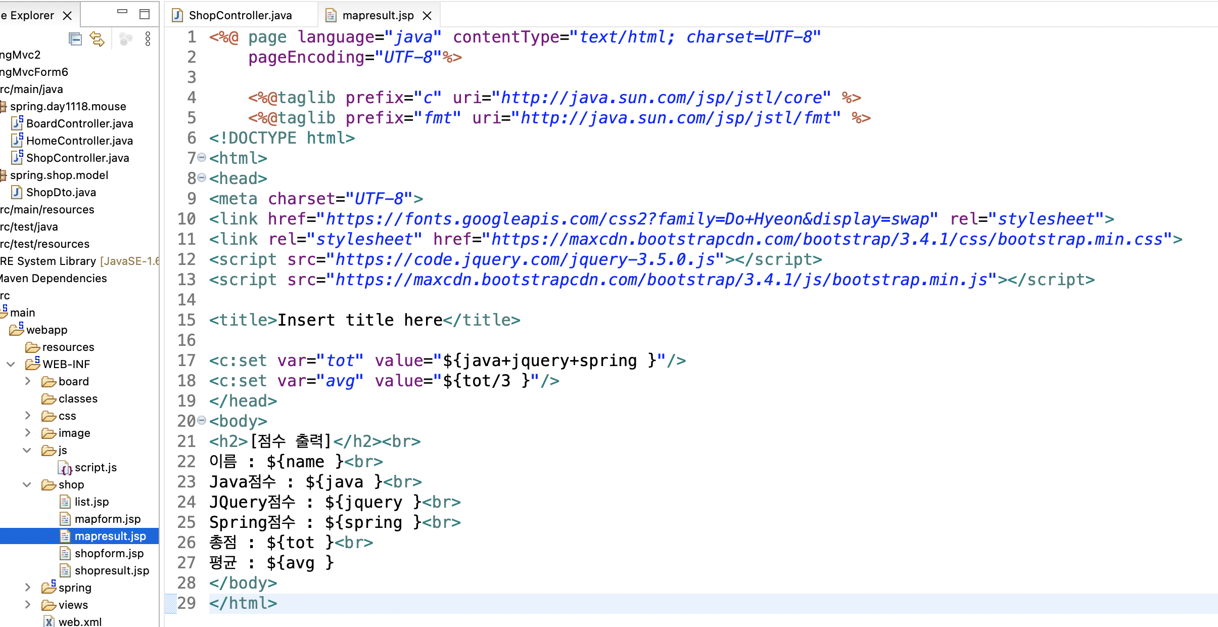 model.setViewName("shop/mapresult"); //출력할곳