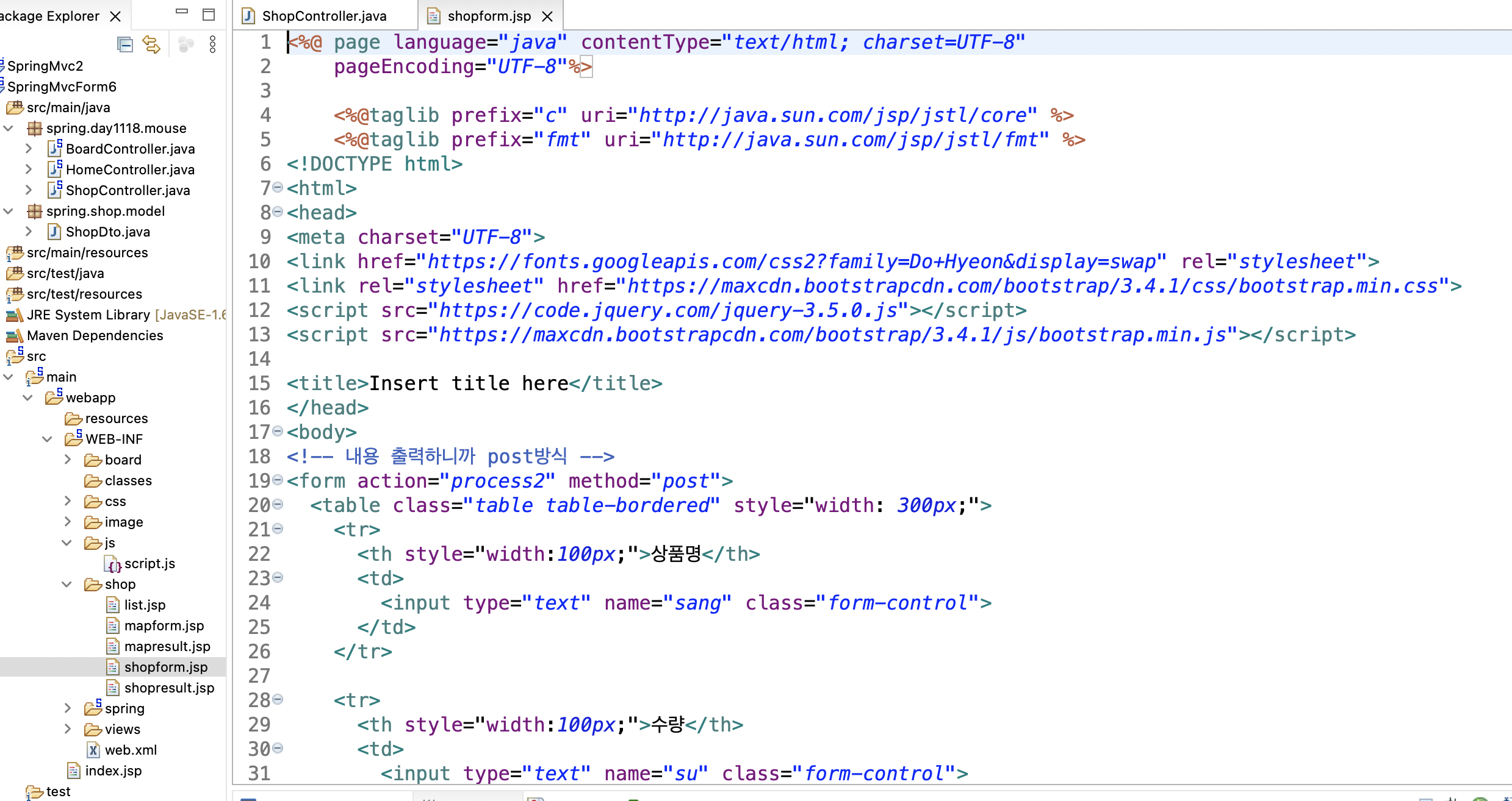//model에 shopDto에 저장,원하는 이름 있으면 @ModelAttribute("name")