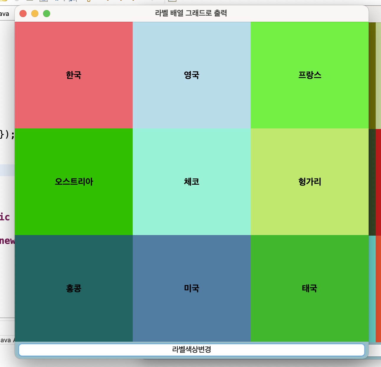 new SwingLabelGridEx05("라벨 배열 그래드로 출력");