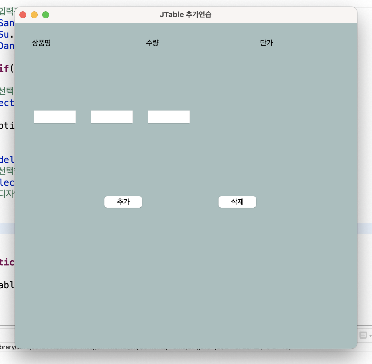 JOptionPane.showMessageDialog(this, "삭제할 행을 먼저 선택");